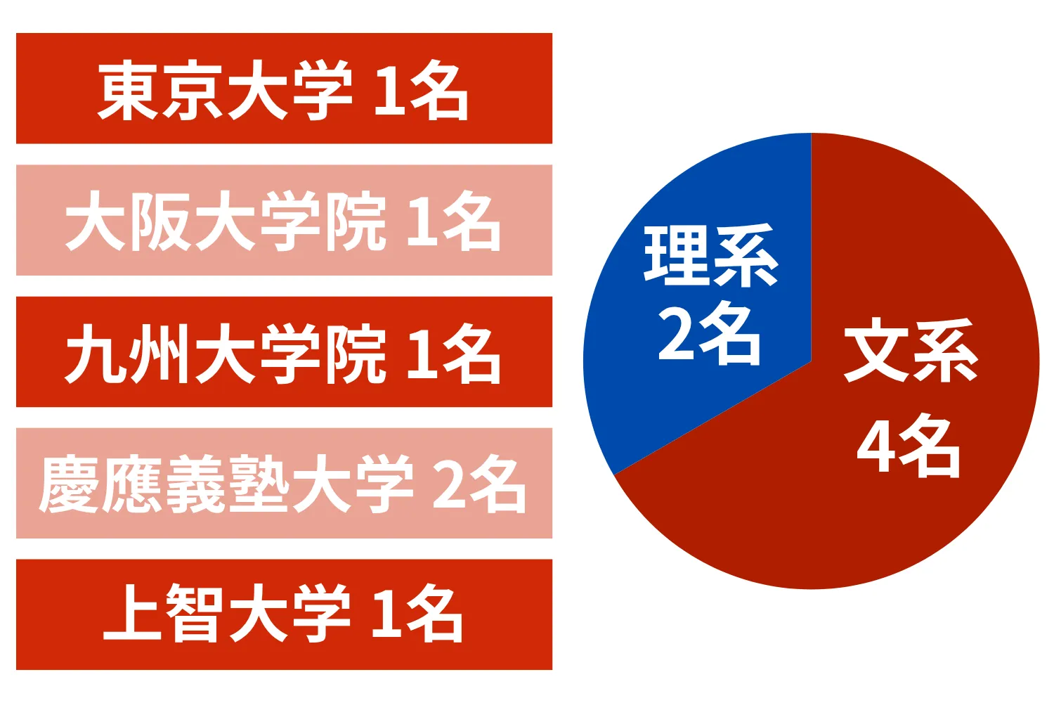 26卒メンバーも難関大学に通う学生ばかり!学業や部活にも力を入れつつ就活にもコミットして厳しい選考を突破する思考力とタフさを兼ね備えています。同学出身の先輩メンバーも多いため、「先輩たちに親近感が湧いた」という声もありました。