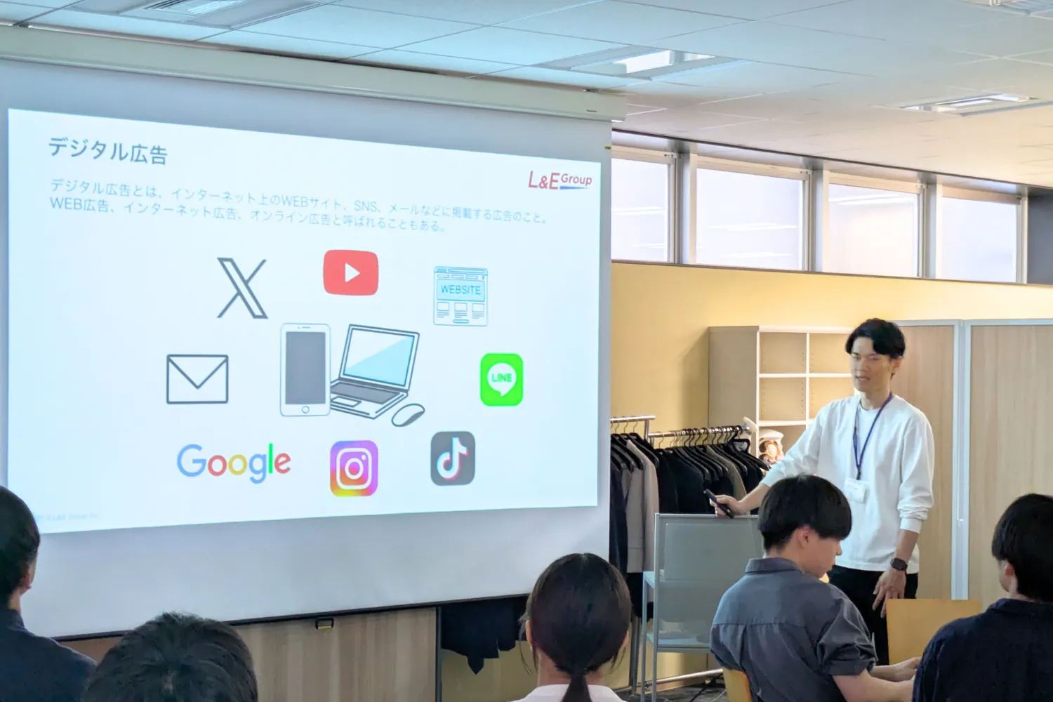 L&E Groupの中核事業であるデジタルマーケティングを用いて、既存事業と新規事業それぞれの成長戦略を立案しプレゼンしてもらいます。